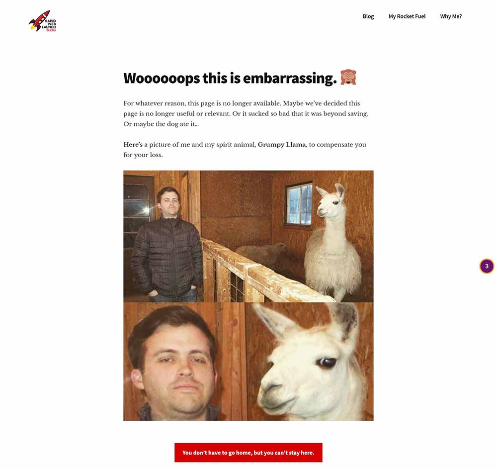 Y esto es lo que sucede cuando mis visitantes de blog obtienen una página 404 en mi blog: