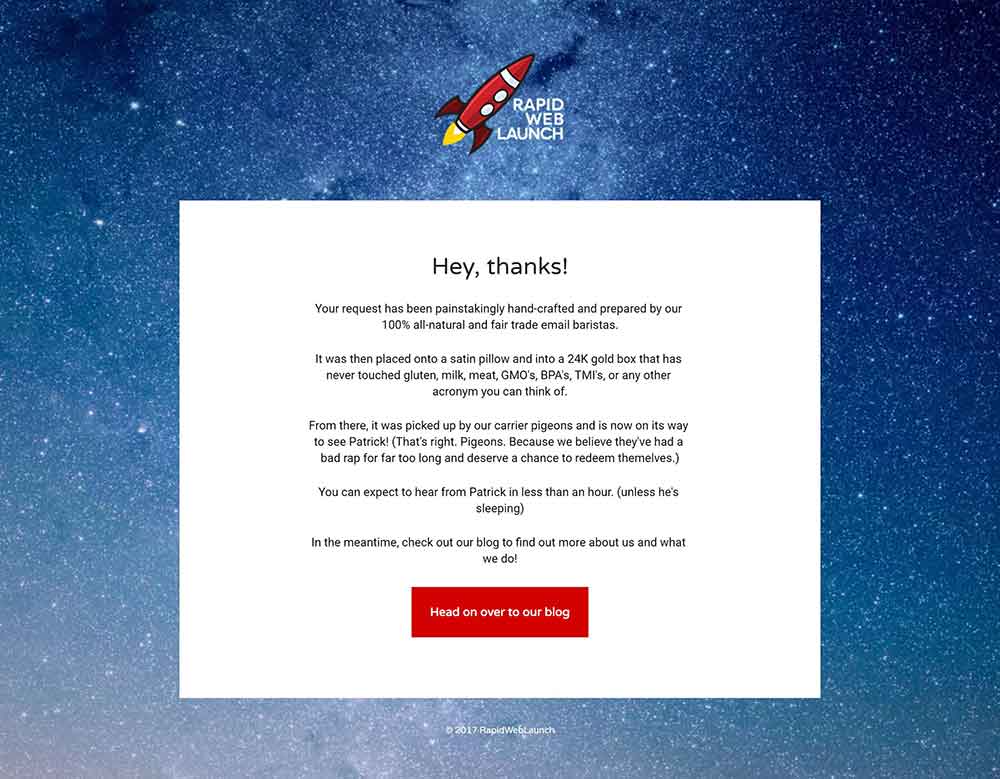 Es pequeño, pero es más memorable que “¡Gracias por enviar! Te responderemos pronto.”