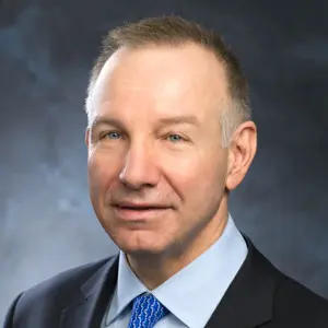 Kevin Crull, CMO of Sprint, smiling while wearing a blue blazer over a black shirt, posed against a light gray background.