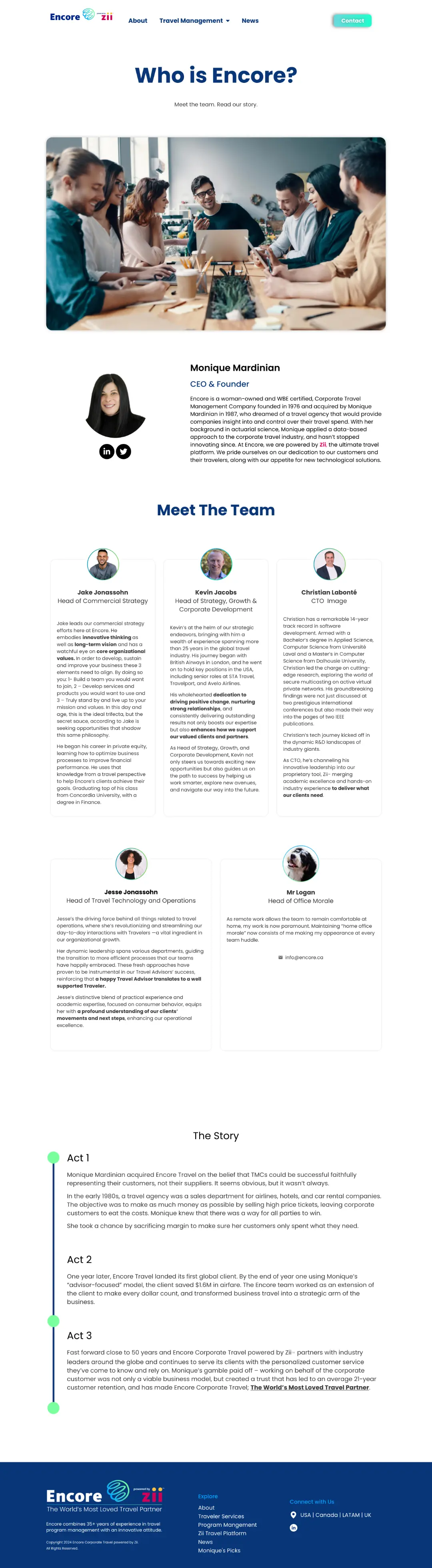 Avancemos casi 50 años y Encore Corporate Travel impulsado por Zii™ se asocia con líderes de la industria en todo el mundo y continúa sirviendo a sus clientes con el servicio al cliente personalizado que han llegado a conocer y en el que confían. La apuesta de Monique valió la pena: trabajar en nombre del cliente corporativo no solo era un modelo de negocio viable, sino que creó una confianza que ha llevado a una retención de clientes media de 21 años, y ha hecho que Encore Corporate Travel; El Socio de Viajes Más Querido del Mundo.