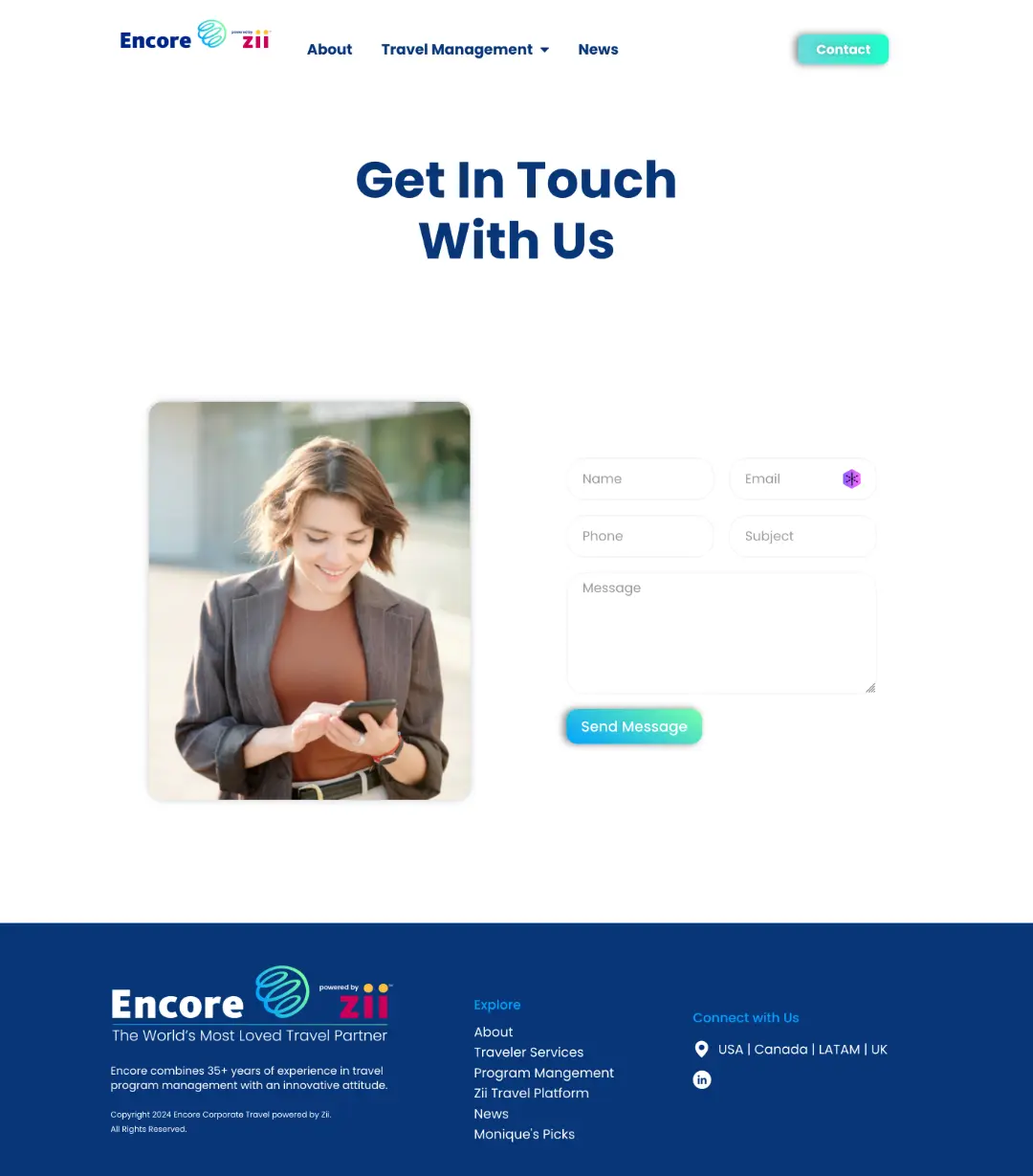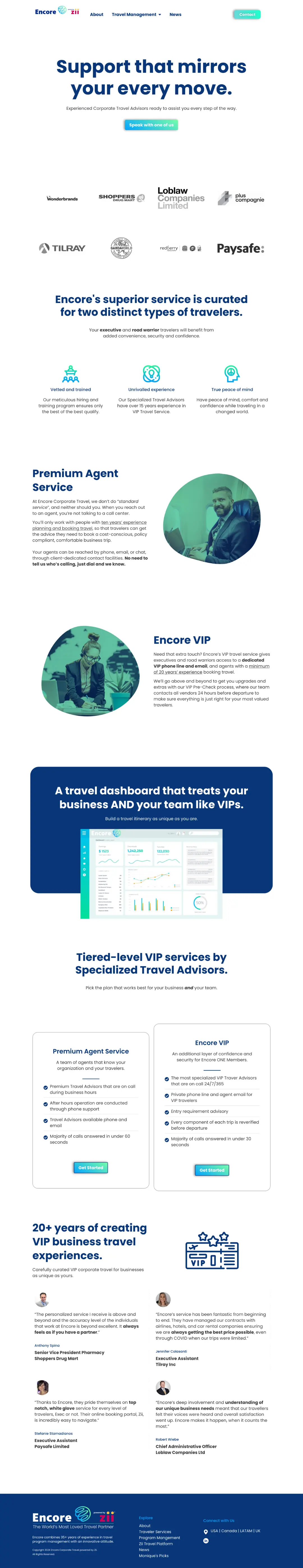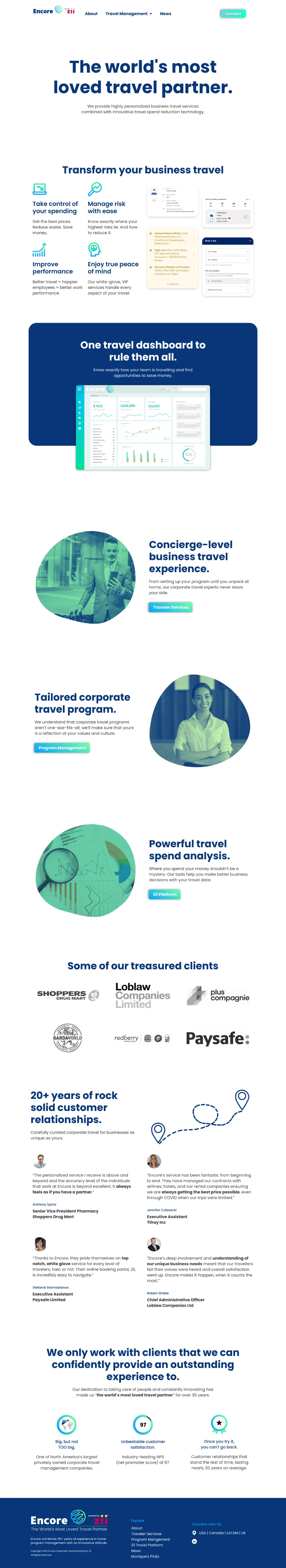 Encore proporciona servicios de viaje de negocios altamente personalizados combinados con tecnología innovadora de reducción de costos de viaje.