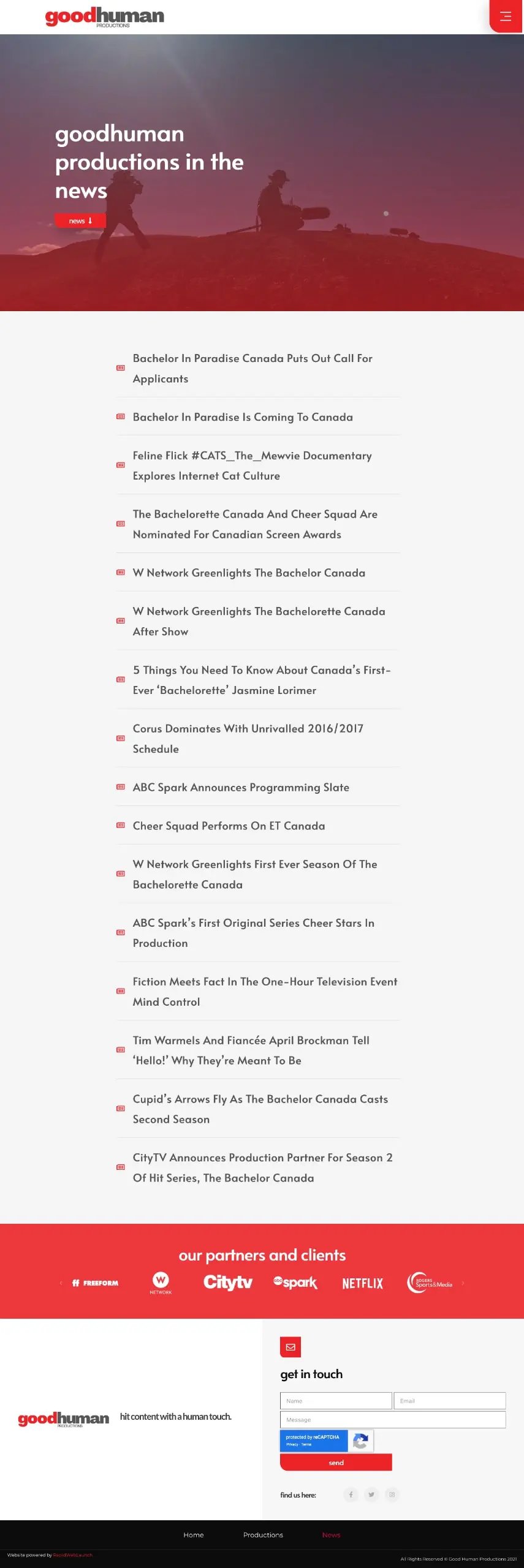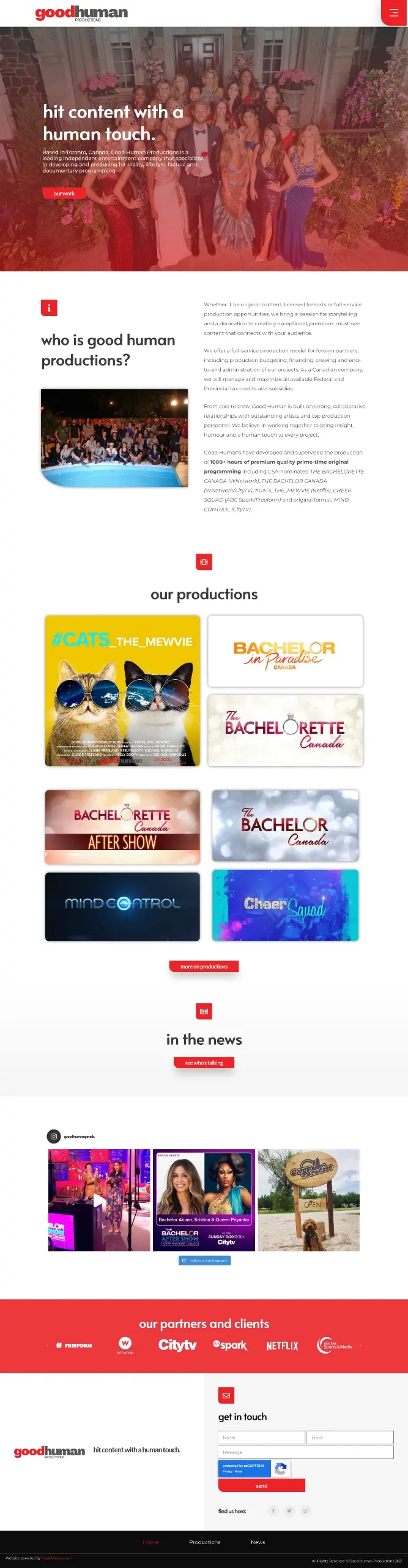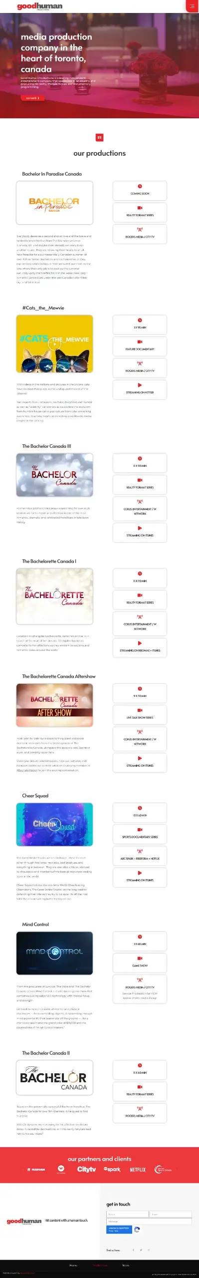Con sede en Toronto, Canadá, Good Human Productions es una destacada empresa de entretenimiento independiente que se especializa en desarrollar y producir programas exitosos de realidad, estilo de vida, hechos y documentales.