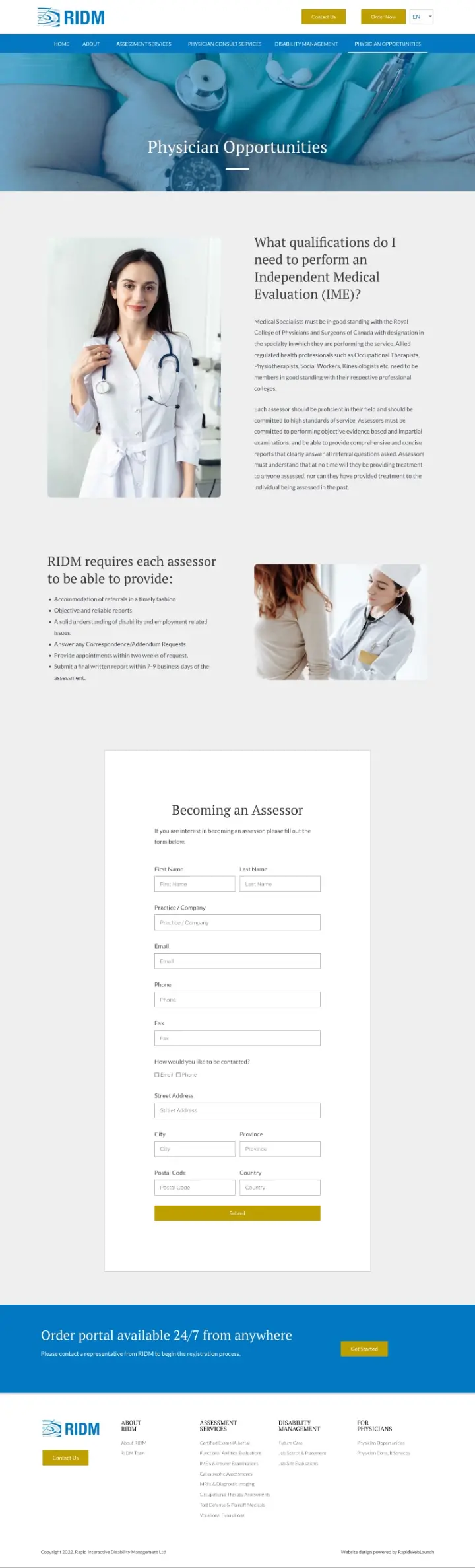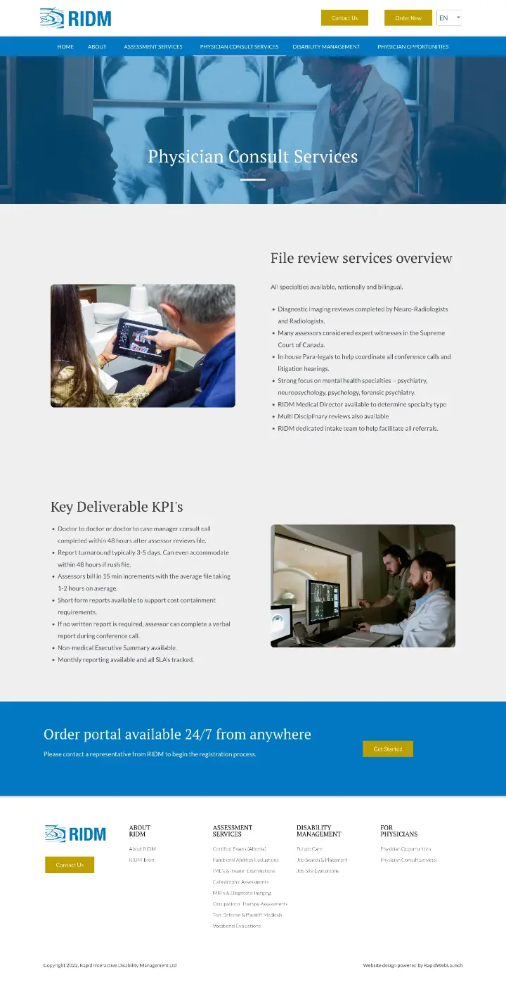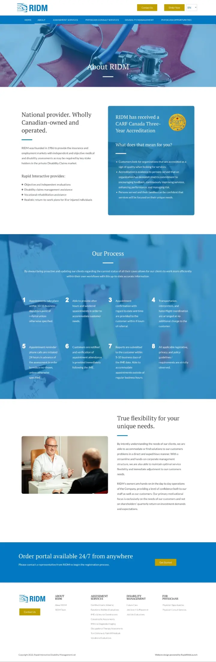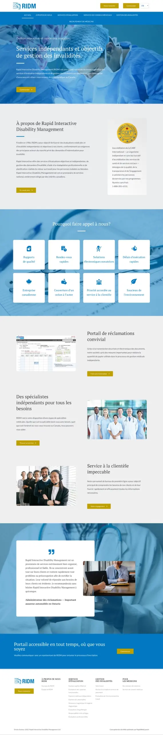 Gestión Rápida e Interactiva de Discapacidad (RIDM) es un proveedor nacional líder que ofrece evaluación independiente defendible y servicios de gestión de discapacidad a empleadores, compañías de seguros y la comunidad legal en Canadá.