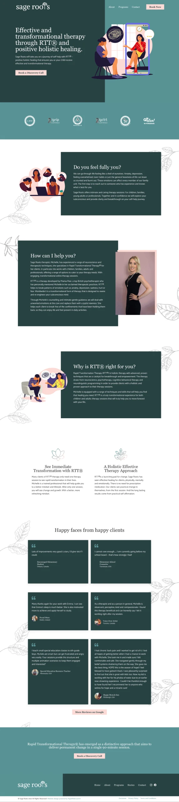 Sage Roots te llevará a un viaje de autoayuda con RTT® – sanación holística positiva que garantiza que tú o tu hijo reciban una terapia efectiva y transformadora.