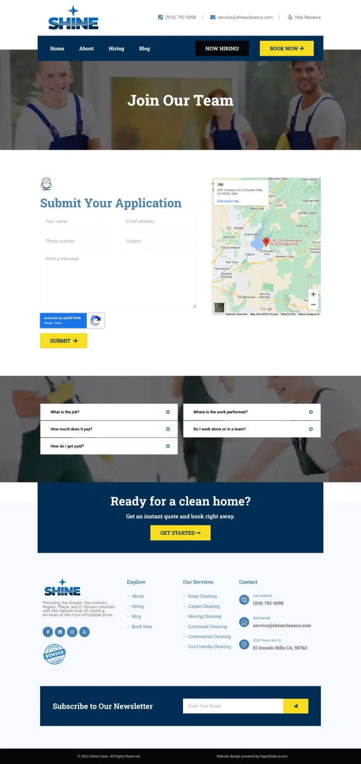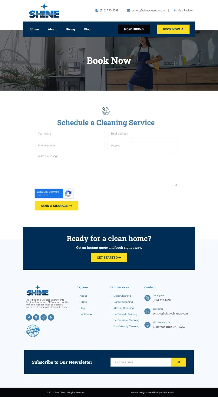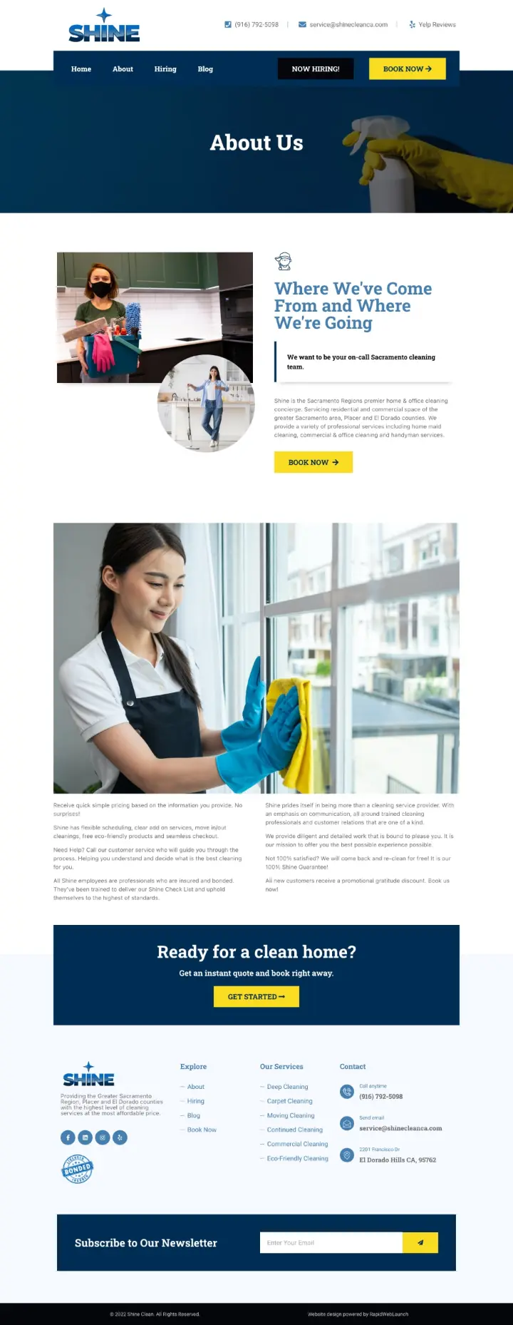Shine Cleaning Services es el principal servicio de limpieza de hogares y oficinas de la región de Sacramento. Ofreciendo servicios para espacios residenciales y comerciales del área metropolitana de Sacramento, los condados de Placer y El Dorado. Proporcionan una variedad de servicios profesionales que incluyen limpieza de casas, limpieza comercial y de oficinas, y servicios de manitas.