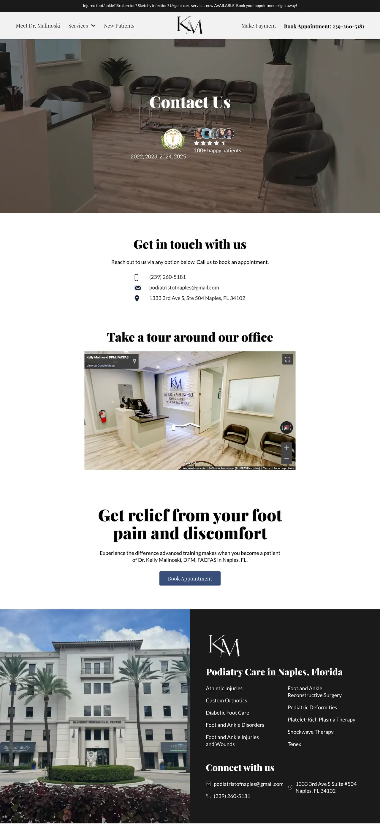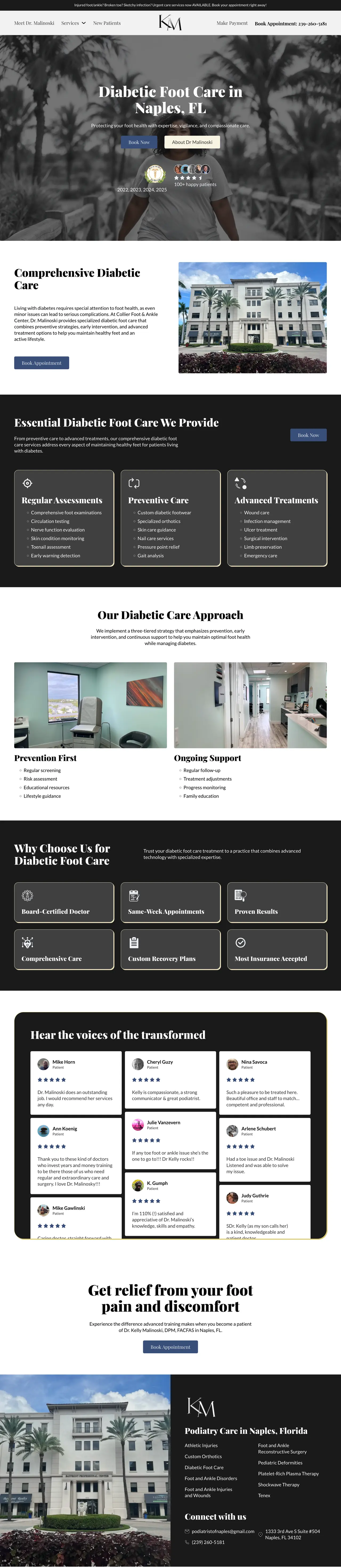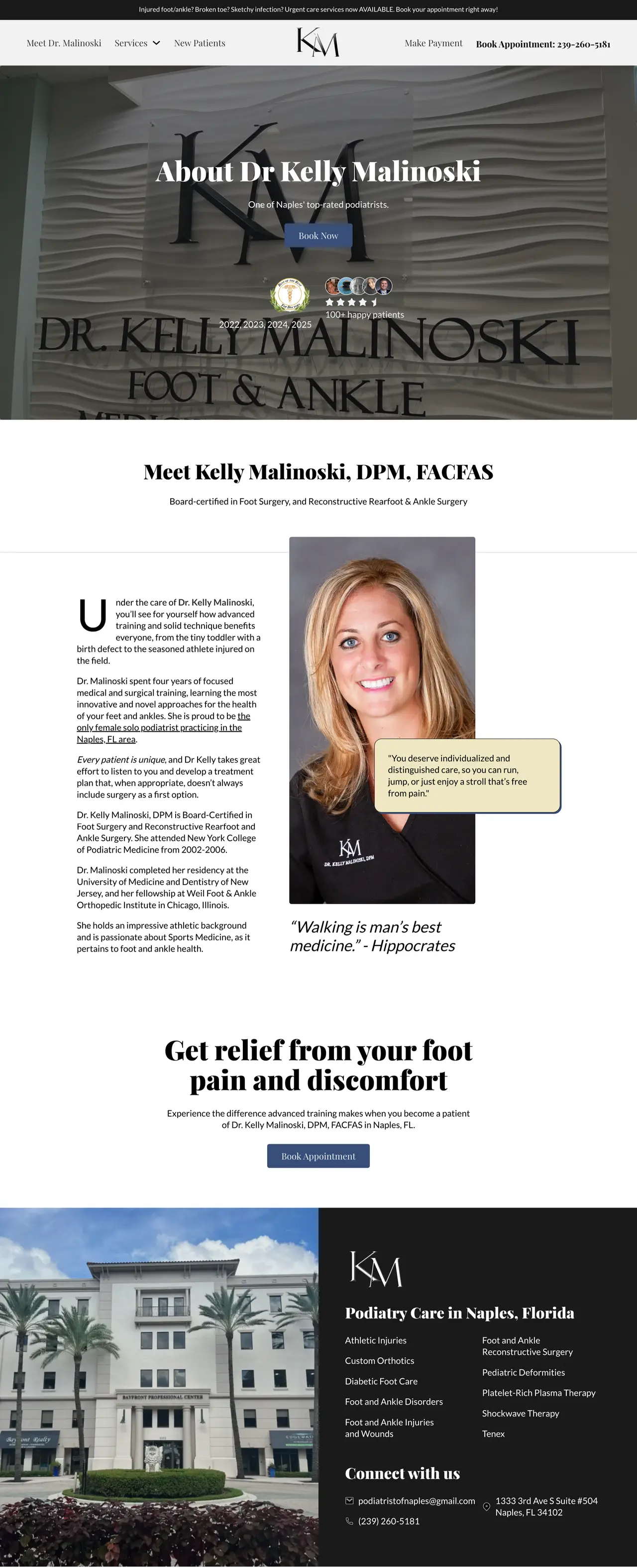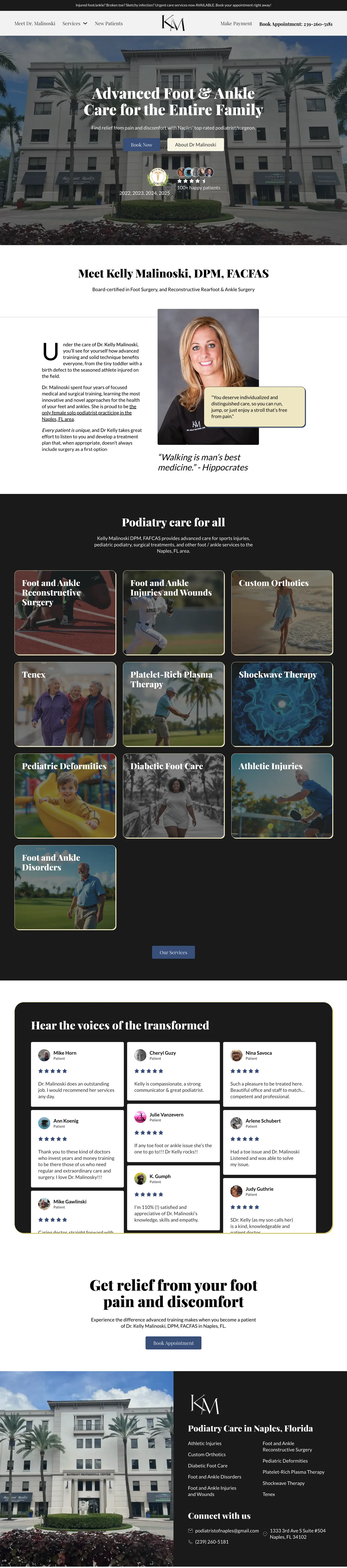 Explore Dr. Kelly Malinoski's impressive website design showcasing expertise in innovative podiatry solutions and patient care excellence.