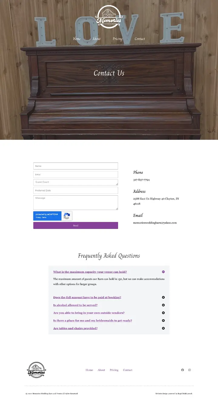 Memories Wedding Barn is a family-run and operated wedding and event venue that specializes in making memories that last a lifetime.