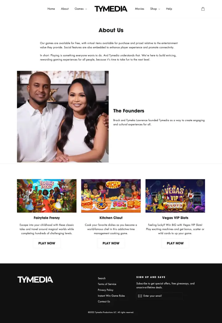 Tymeka teamed up with her husband Brock to create Tymedia with Tymeka leading game development and Brock leading movie production.